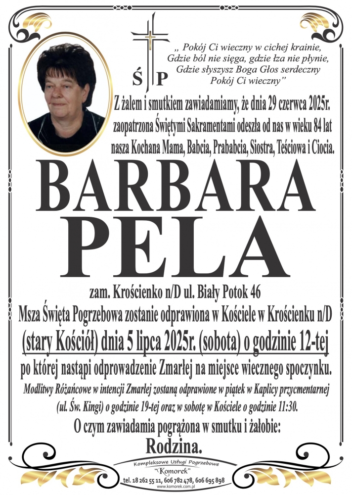 Barbara Pela - Nekrologi - podhale24.pl
