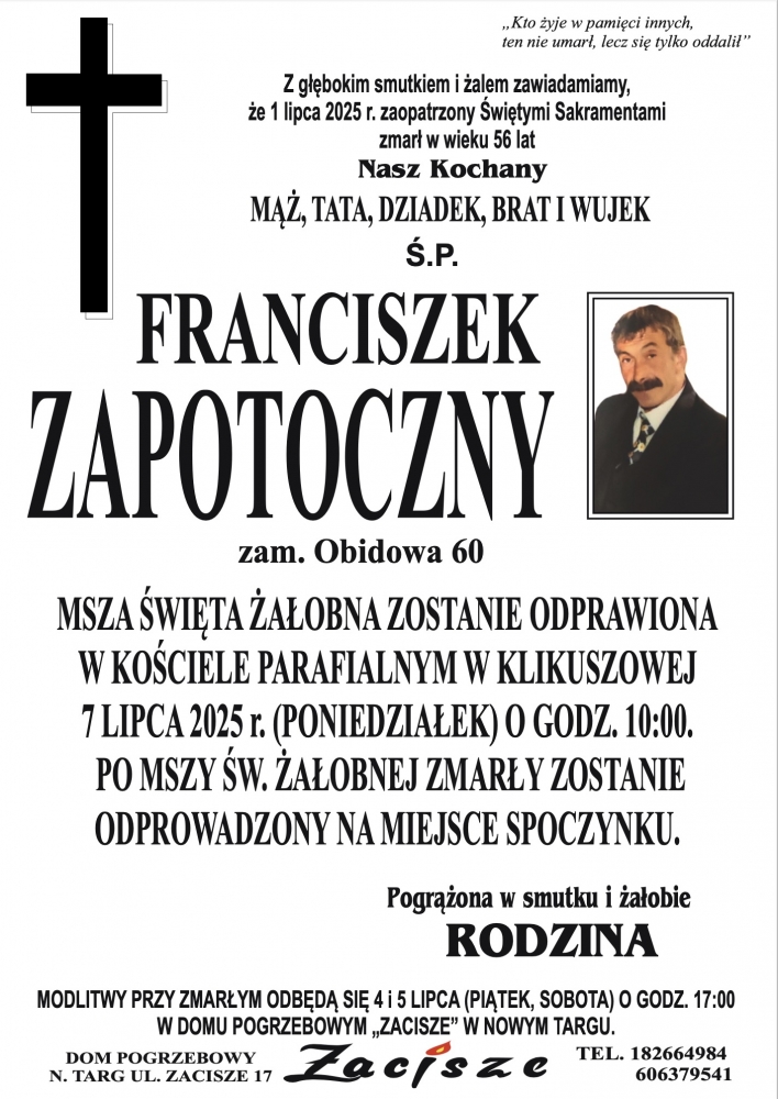 Franciszek Zapotoczny - Nekrologi - podhale24.pl