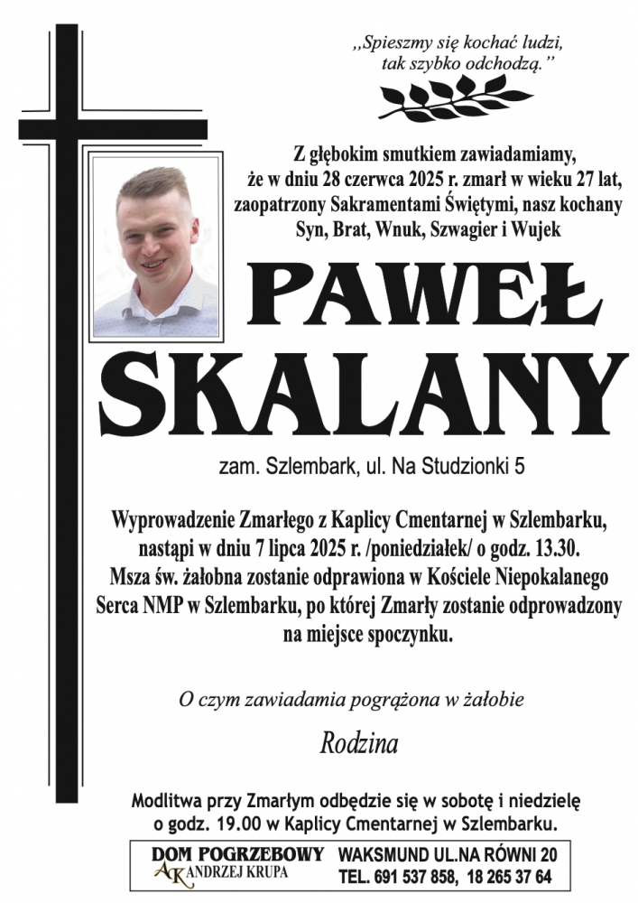Podhale24.pl zastrzega sobie prawo do nie publikowania wspomnień, w szczególności tych nie związanych z profilem działu nekrologi, zawierających wulgaryzmy, wzywających do zachowań niezgodnych z prawem, obrażających osoby publiczne i prywatne, obrażających inne narodowości, rasy, religie itd, oraz te, bez możliwości telefonicznej lub mailowej weryfikacji ich autora.