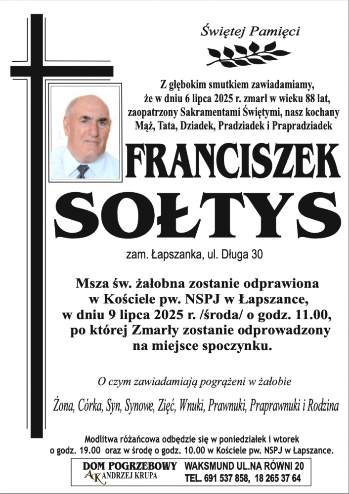Franciszek Sołtys - Nekrologi - podhale24.pl
