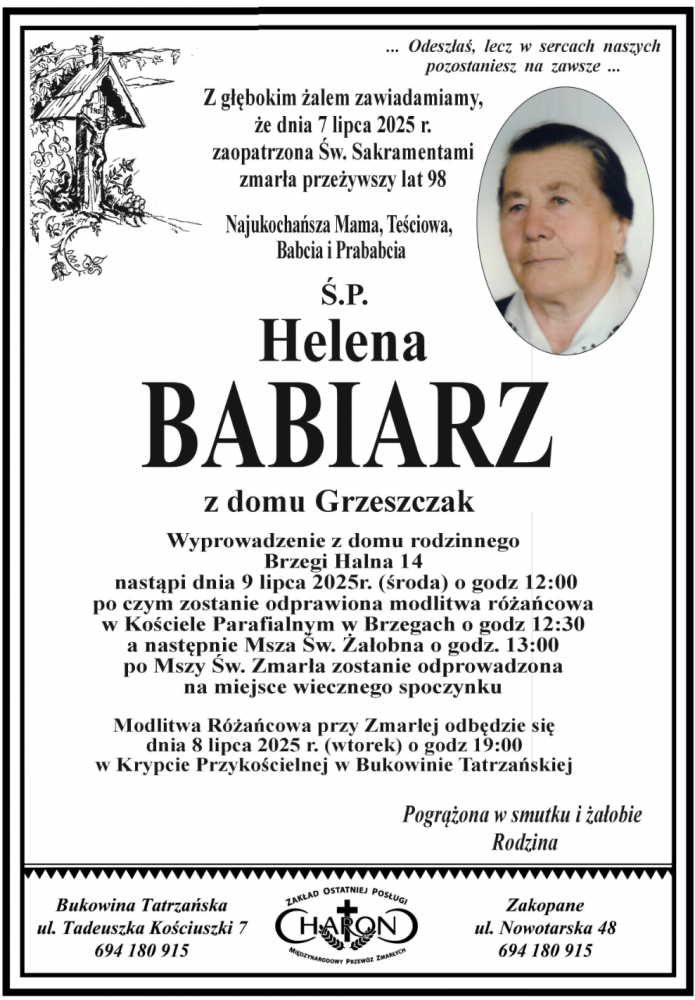 Podhale24.pl zastrzega sobie prawo do nie publikowania wspomnień, w szczególności tych nie związanych z profilem działu nekrologi, zawierających wulgaryzmy, wzywających do zachowań niezgodnych z prawem, obrażających osoby publiczne i prywatne, obrażających inne narodowości, rasy, religie itd, oraz te, bez możliwości telefonicznej lub mailowej weryfikacji ich autora.