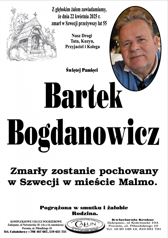 Bartek Bogdanowicz - Nekrologi - podhale24.pl