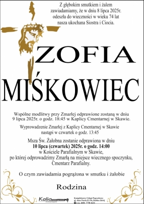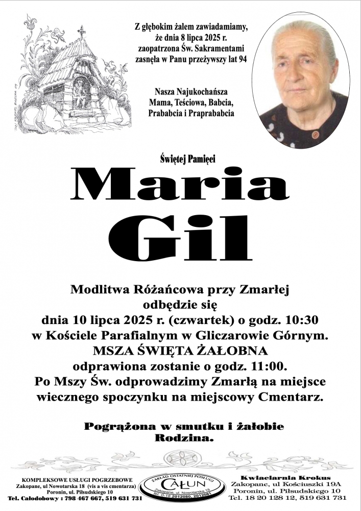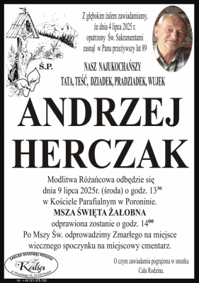 Podhale24.pl zastrzega sobie prawo do nie publikowania wspomnień, w szczególności tych nie związanych z profilem działu nekrologi, zawierających wulgaryzmy, wzywających do zachowań niezgodnych z prawem, obrażających osoby publiczne i prywatne, obrażających inne narodowości, rasy, religie itd, oraz te, bez możliwości telefonicznej lub mailowej weryfikacji ich autora.