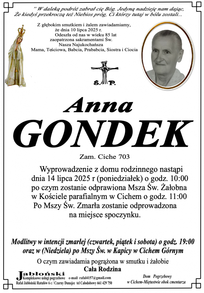 Anna Gondek - Nekrologi - podhale24.pl