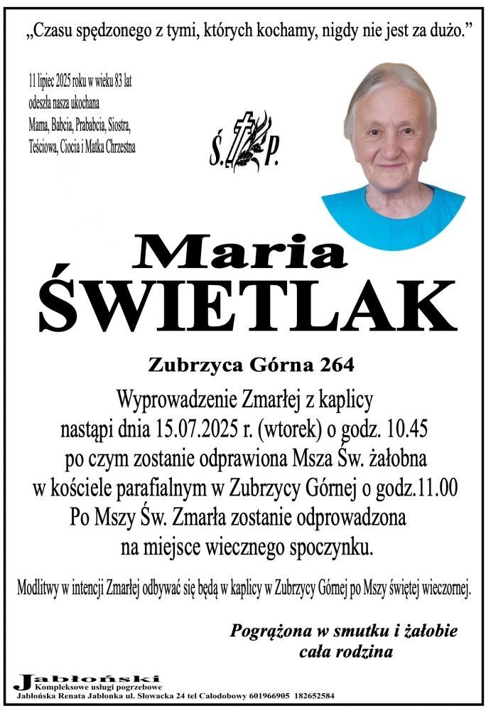 Maria Świetlak - Nekrologi - podhale24.pl