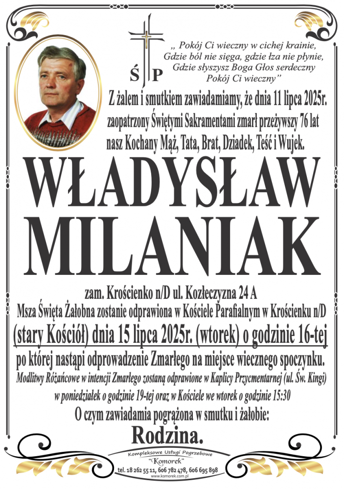 Władysław Milaniak - Nekrologi - podhale24.pl