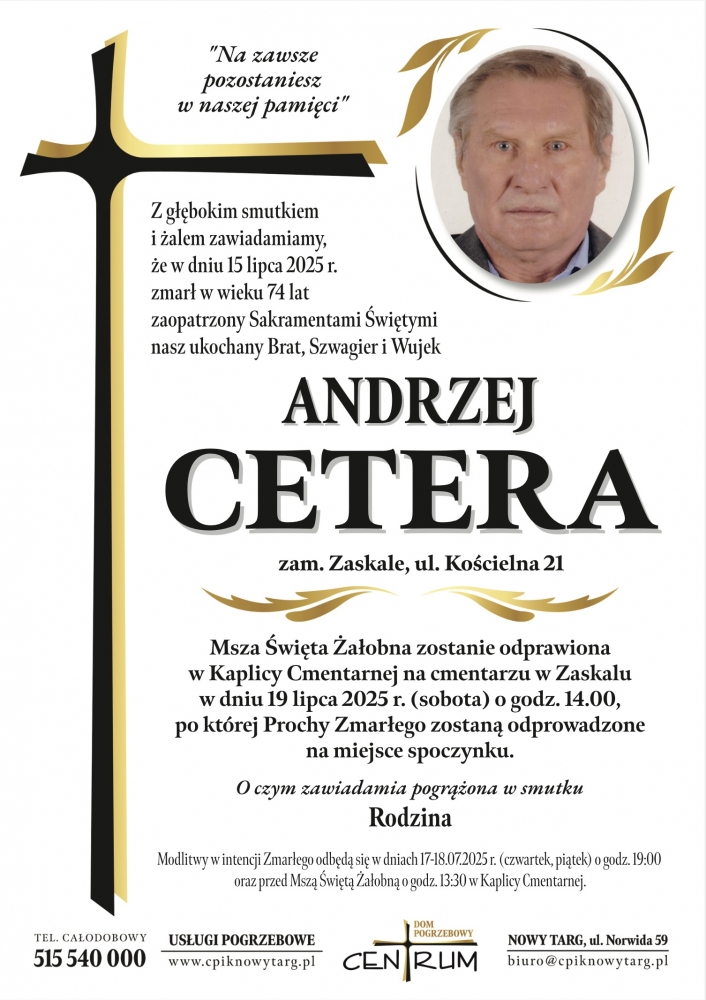 Andrzej Cetera - Nekrologi - podhale24.pl