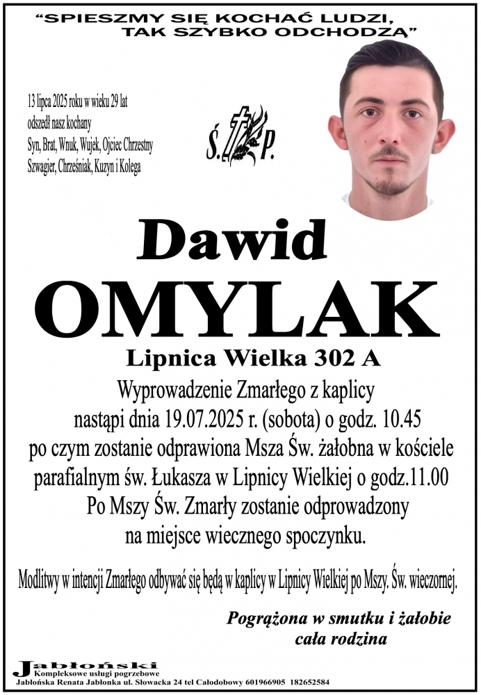 Dawid Omylak - Nekrologi - podhale24.pl
