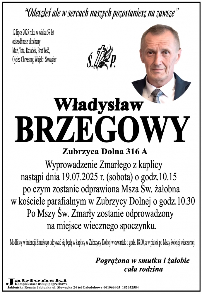 Władysław Brzegowy - Nekrologi - podhale24.pl