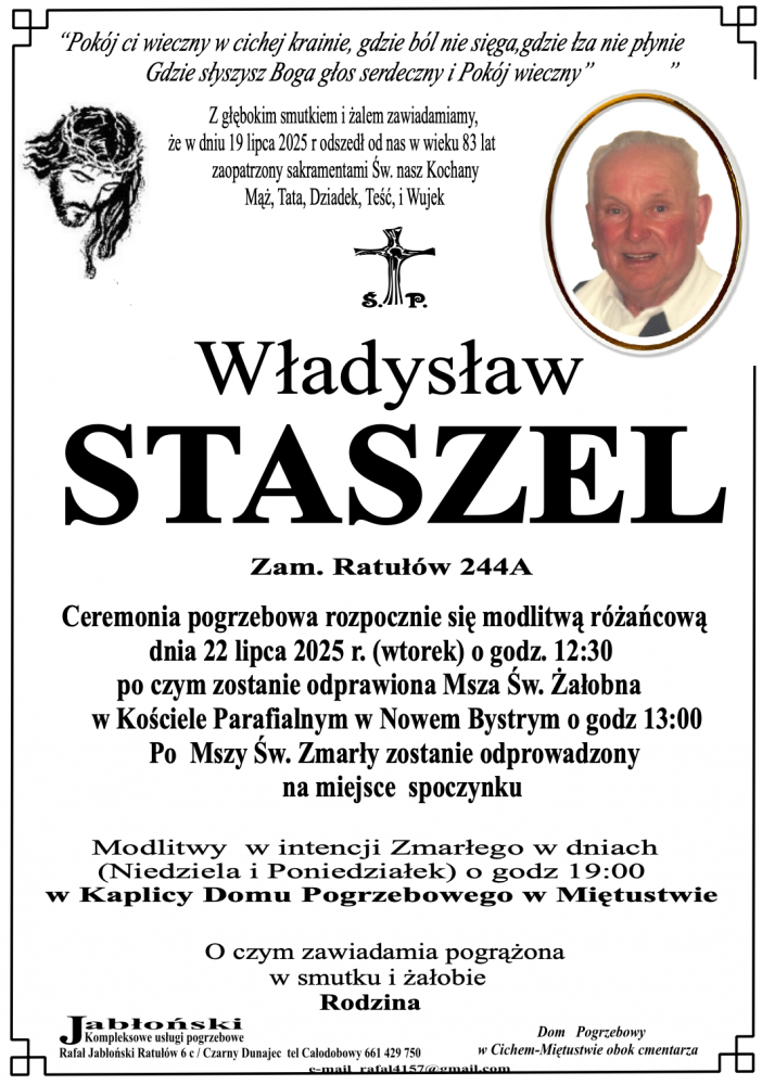 Podhale24.pl zastrzega sobie prawo do nie publikowania wspomnień, w szczególności tych nie związanych z profilem działu nekrologi, zawierających wulgaryzmy, wzywających do zachowań niezgodnych z prawem, obrażających osoby publiczne i prywatne, obrażających inne narodowości, rasy, religie itd, oraz te, bez możliwości telefonicznej lub mailowej weryfikacji ich autora.