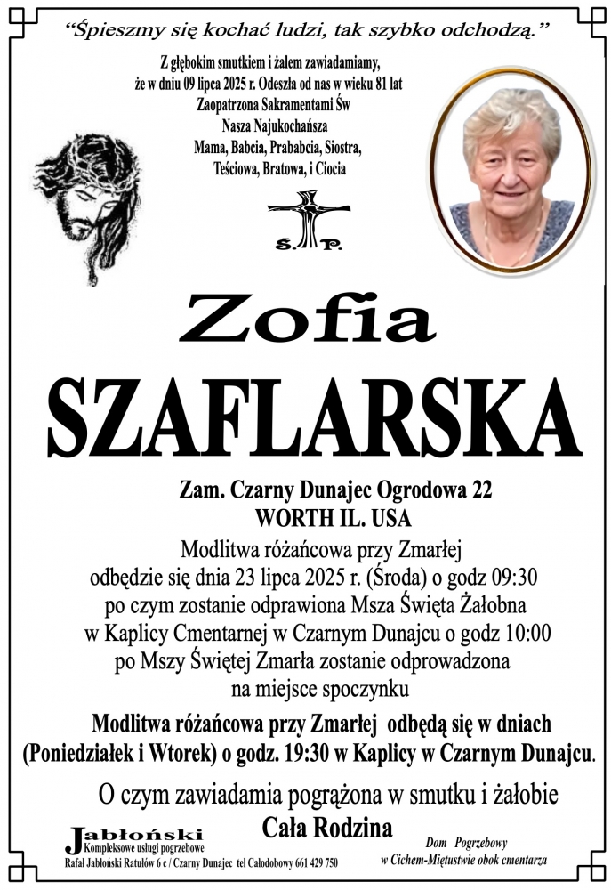 Zofia Szaflarska - Nekrologi - podhale24.pl