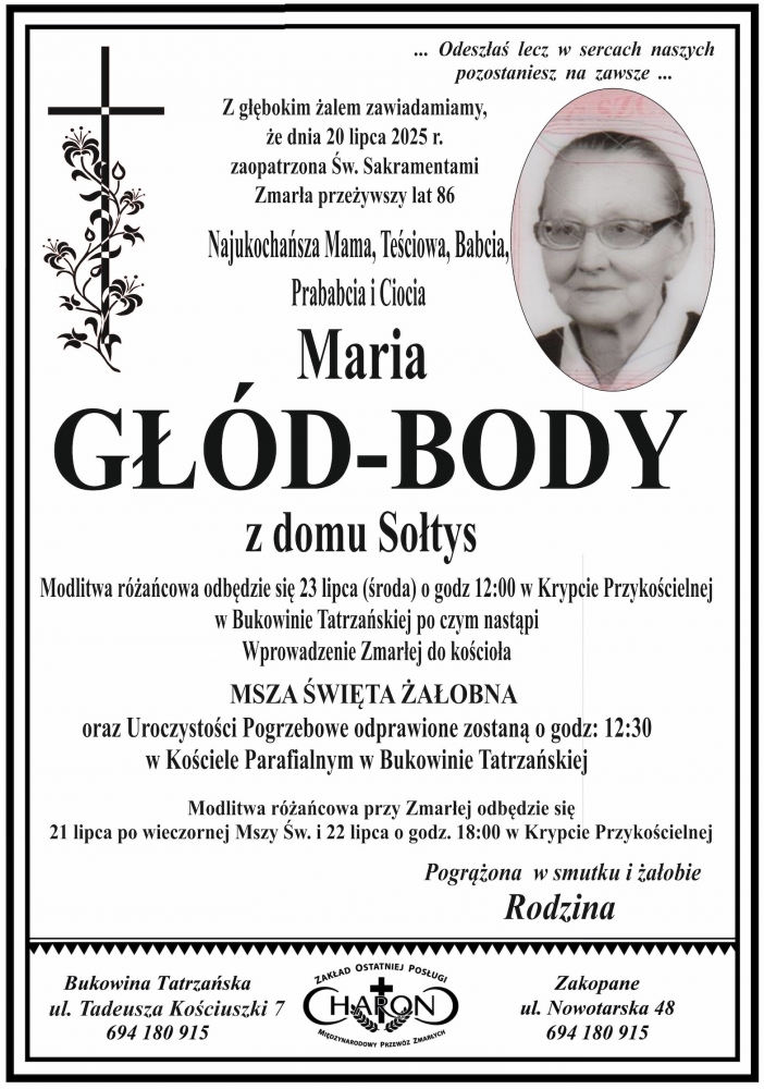 Maria Głód-Body - Nekrologi - podhale24.pl