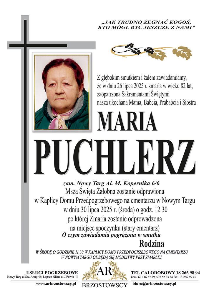 Maria Puchlerz - Nekrologi - podhale24.pl
