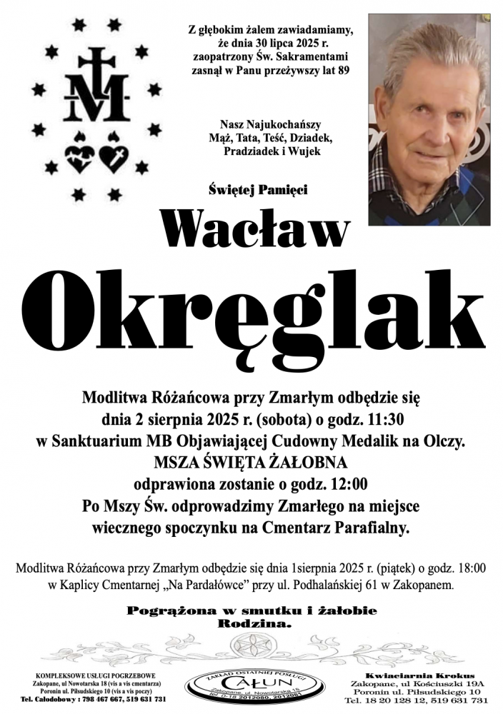 Wacłąw Okręglak - Nekrologi - podhale24.pl