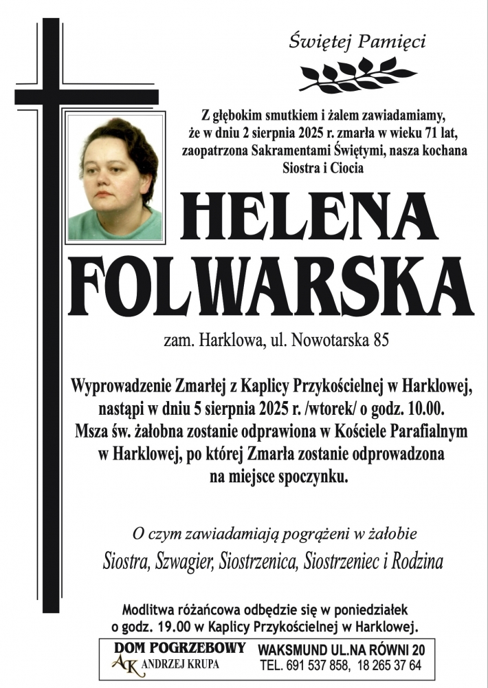 Helena Folwarska - Nekrologi - podhale24.pl