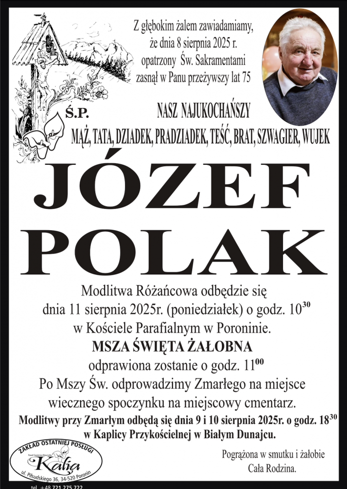 Podhale24.pl zastrzega sobie prawo do nie publikowania wspomnień, w szczególności tych nie związanych z profilem działu nekrologi, zawierających wulgaryzmy, wzywających do zachowań niezgodnych z prawem, obrażających osoby publiczne i prywatne, obrażających inne narodowości, rasy, religie itd, oraz te, bez możliwości telefonicznej lub mailowej weryfikacji ich autora.
