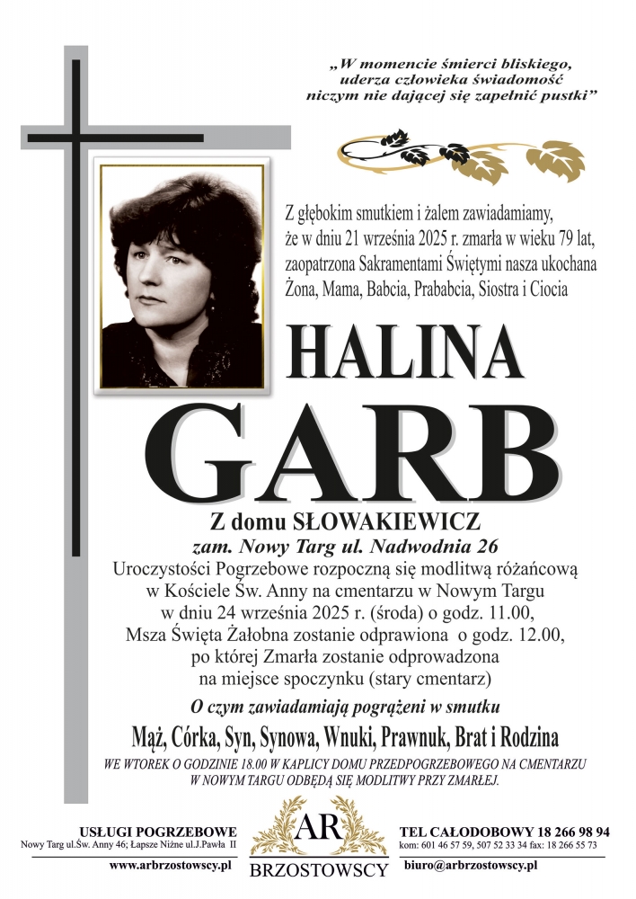 Halina Garb - Nekrologi - podhale24.pl