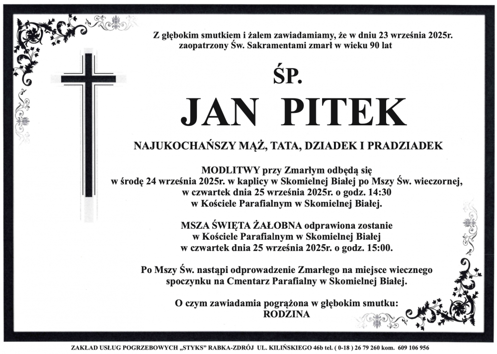 Jan Pitek - Nekrologi - podhale24.pl