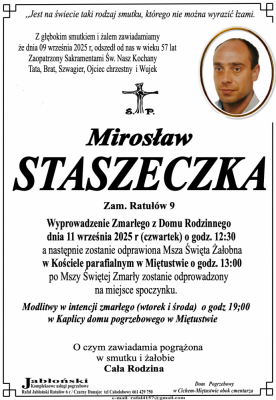 Podhale24.pl zastrzega sobie prawo do nie publikowania wspomnień, w szczególności tych nie związanych z profilem działu nekrologi, zawierających wulgaryzmy, wzywających do zachowań niezgodnych z prawem, obrażających osoby publiczne i prywatne, obrażających inne narodowości, rasy, religie itd, oraz te, bez możliwości telefonicznej lub mailowej weryfikacji ich autora.