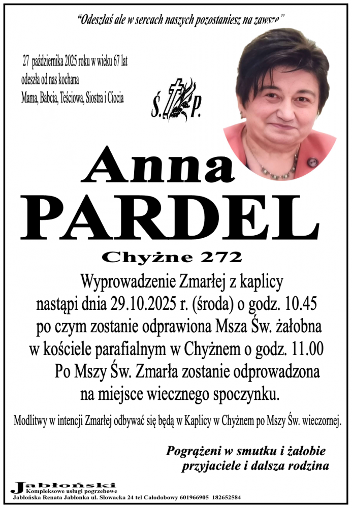 Anna Pardel - Nekrologi - podhale24.pl