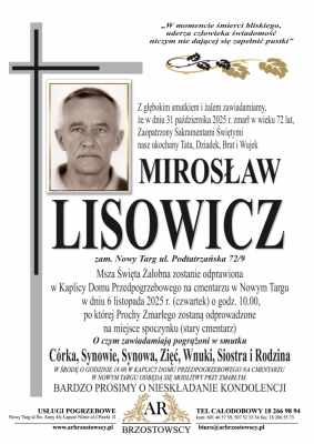 Podhale24.pl zastrzega sobie prawo do nie publikowania wspomnień, w szczególności tych nie związanych z profilem działu nekrologi, zawierających wulgaryzmy, wzywających do zachowań niezgodnych z prawem, obrażających osoby publiczne i prywatne, obrażających inne narodowości, rasy, religie itd, oraz te, bez możliwości telefonicznej lub mailowej weryfikacji ich autora.