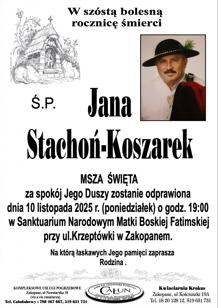 Jan Stachoń-Koszarek - Nekrologi - podhale24.pl