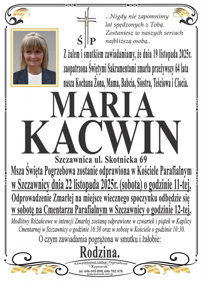Maria Kacwin - Nekrologi - podhale24.pl