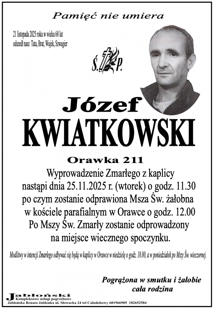 Józef Kwiatkowski - Nekrologi - podhale24.pl