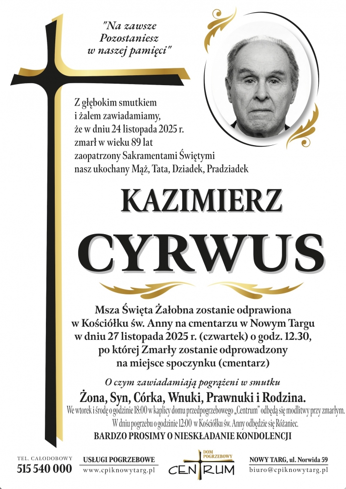 Kazimierz Cyrwus - Nekrologi - podhale24.pl