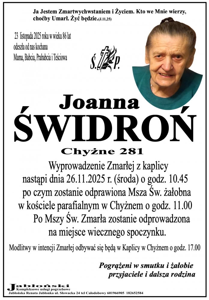 Joanna Świdroń - Nekrologi - podhale24.pl