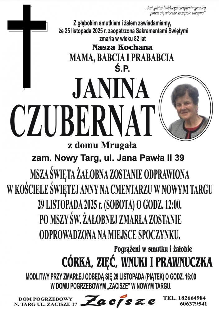 Janina Czubernat - Nekrologi - podhale24.pl