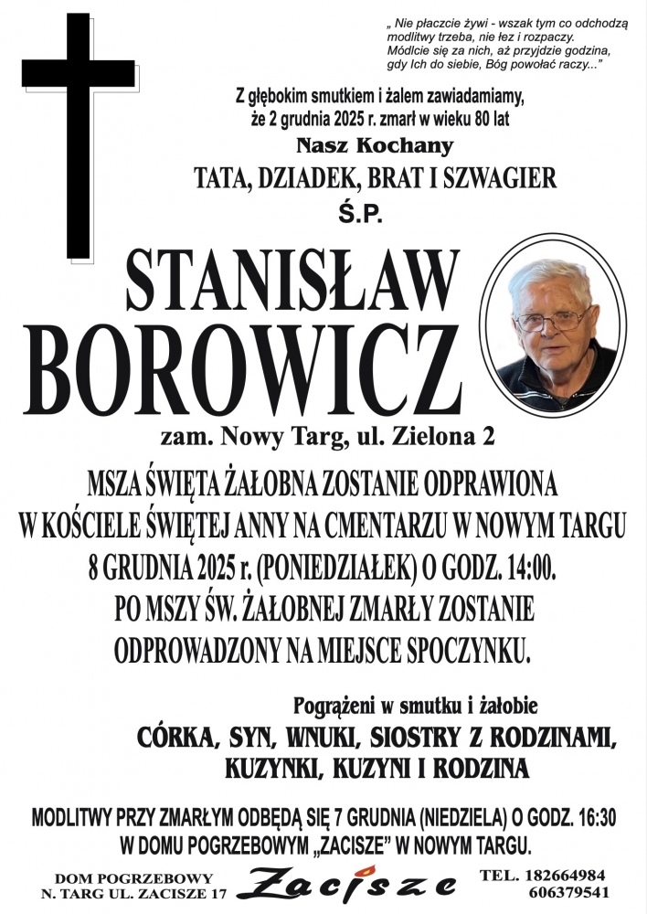 Stanisłąw Borowicz - Nekrologi - podhale24.pl