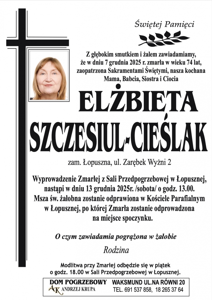 Elżbieta Szczesiul-Cieślak - Nekrologi - podhale24.pl