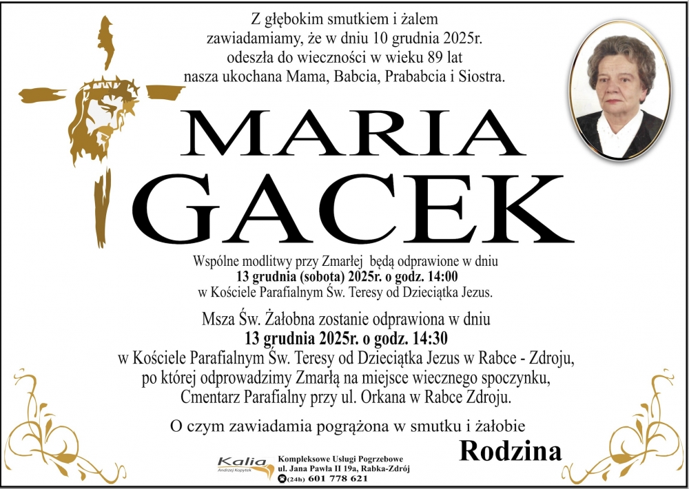 Maria Gacek - Nekrologi - podhale24.pl