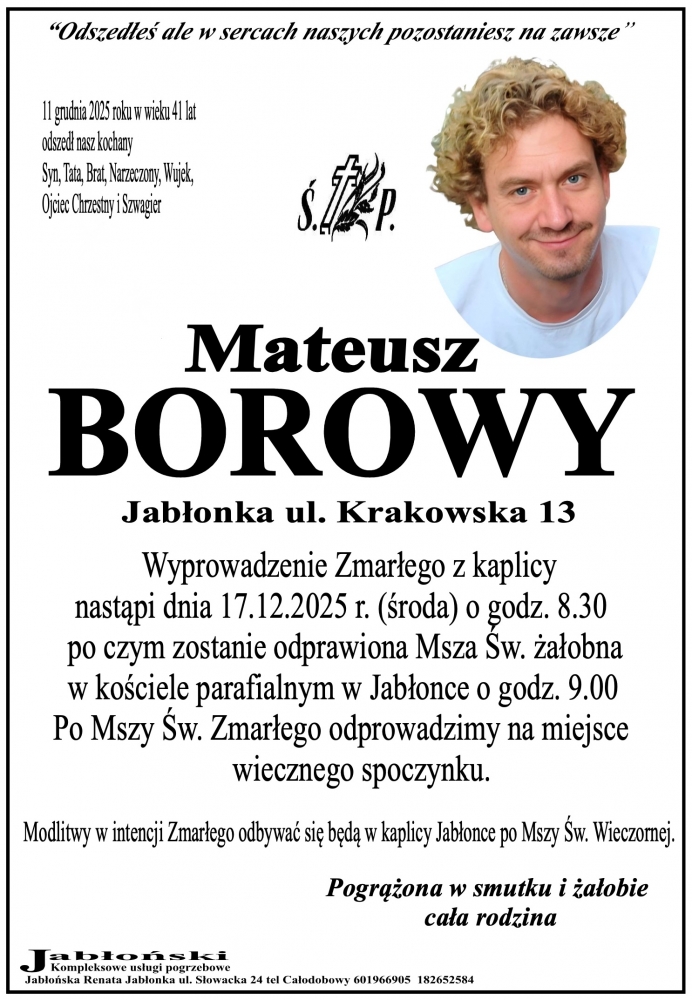 Mateusz Borowy - Nekrologi - podhale24.pl