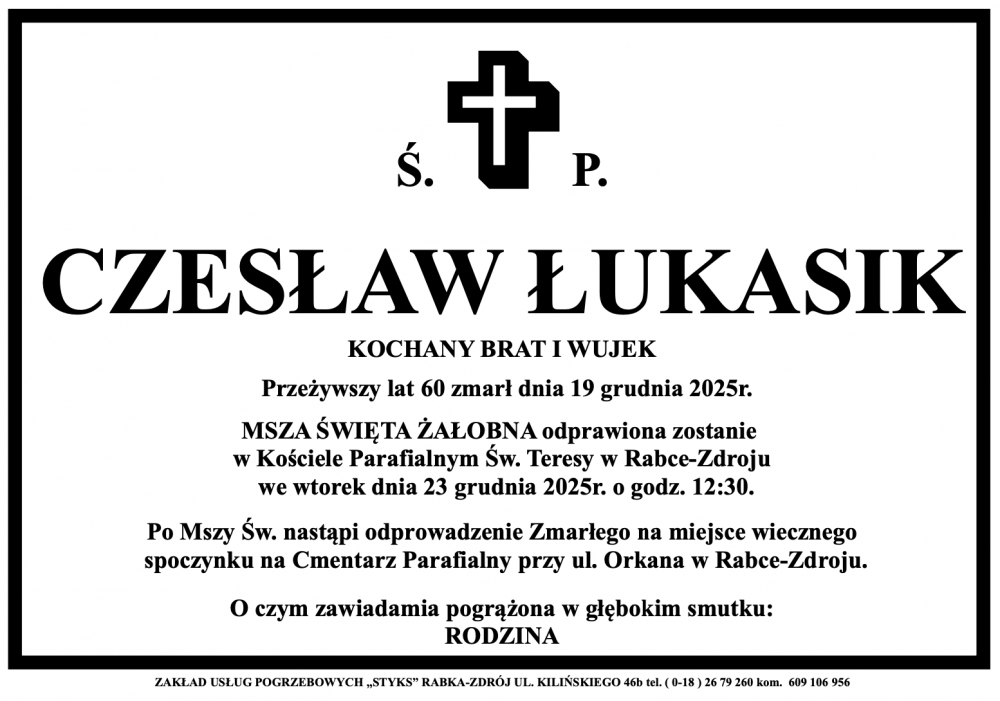 Czesław Łukasik - Nekrologi - podhale24.pl
