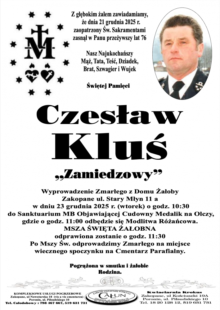 Czesław Kluś - Nekrologi - podhale24.pl