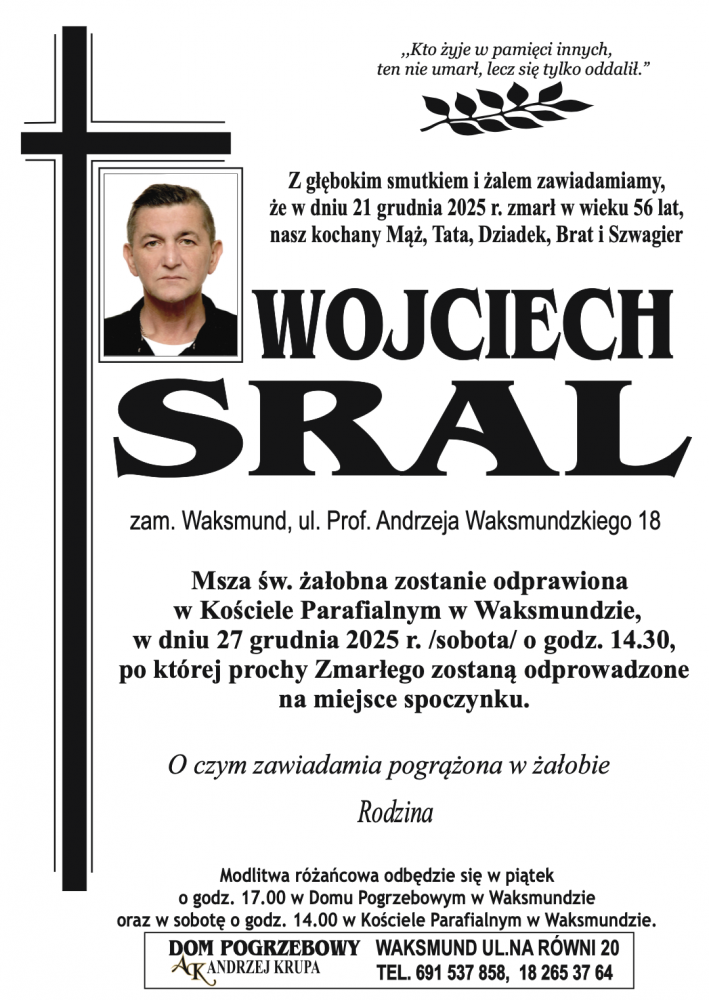 Wojciech Sral - Nekrologi - podhale24.pl