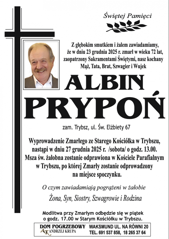 Albin Prypoń - Nekrologi - podhale24.pl