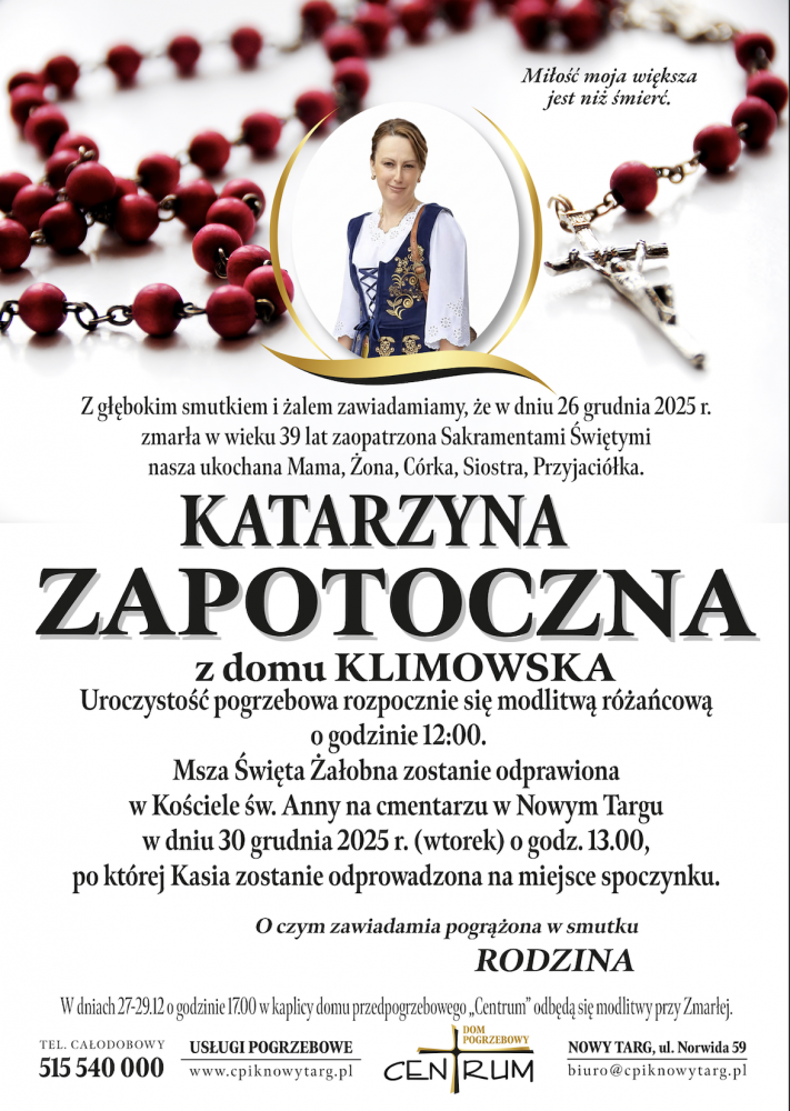 Katarzyna Zapotoczna - Nekrologi - podhale24.pl