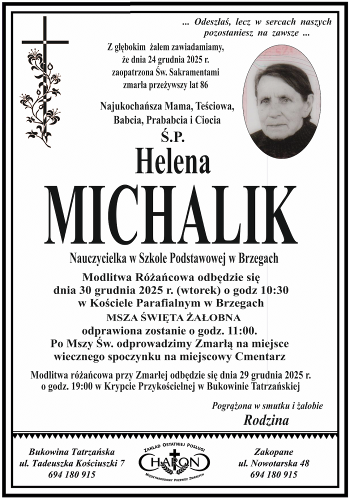 Helena Michalik - Nekrologi - podhale24.pl