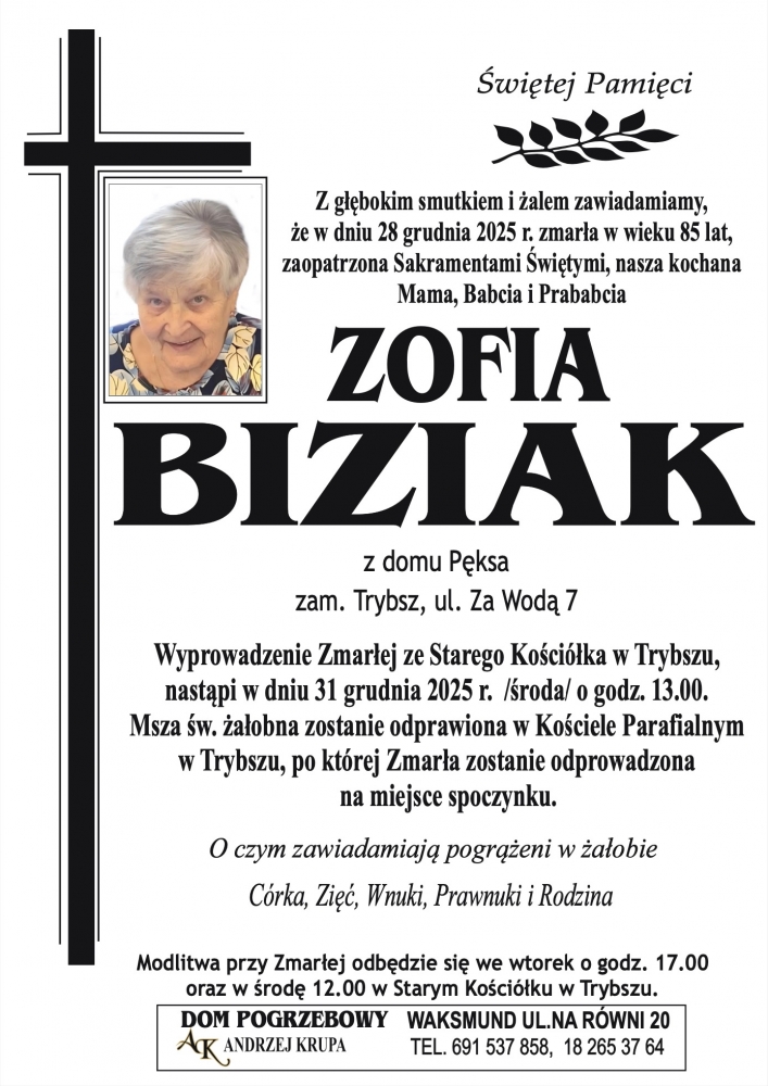 Podhale24.pl zastrzega sobie prawo do nie publikowania wspomnień, w szczególności tych nie związanych z profilem działu nekrologi, zawierających wulgaryzmy, wzywających do zachowań niezgodnych z prawem, obrażających osoby publiczne i prywatne, obrażających inne narodowości, rasy, religie itd, oraz te, bez możliwości telefonicznej lub mailowej weryfikacji ich autora.