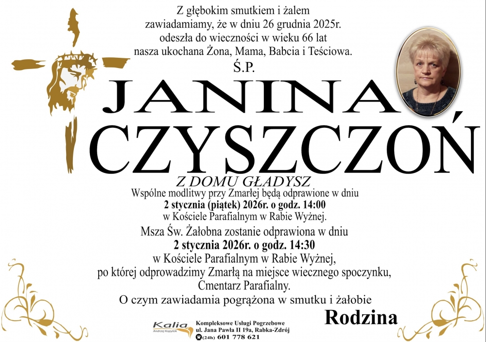 Janina Czyszczoń - Nekrologi - podhale24.pl