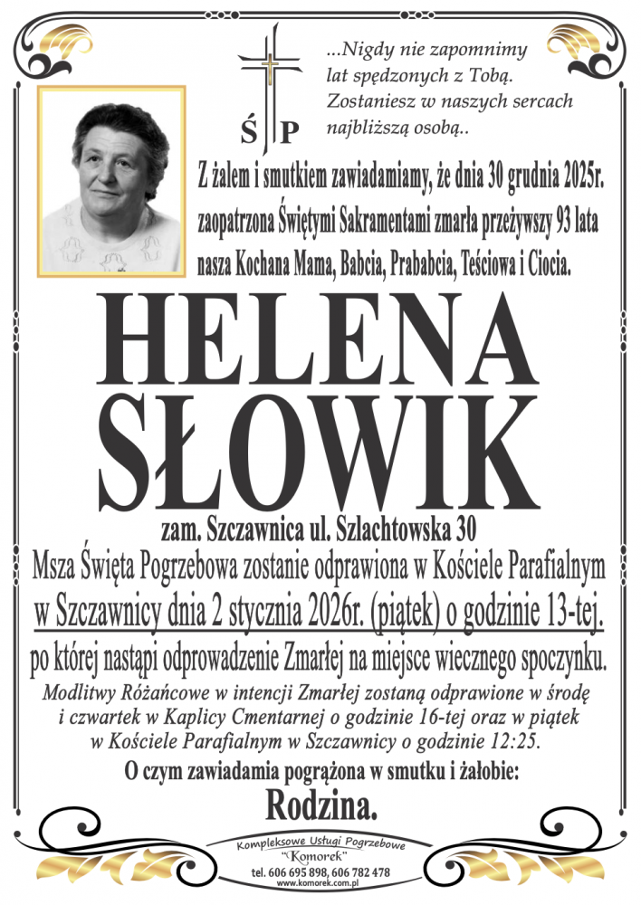 Helena Słowik - Nekrologi - podhale24.pl
