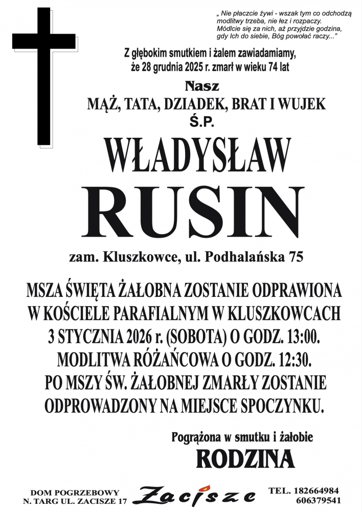 Władysław Rusin - Nekrologi - podhale24.pl
