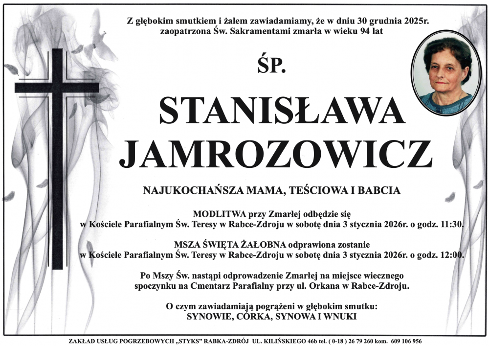 Stanisława Jamrozowicz - Nekrologi - podhale24.pl