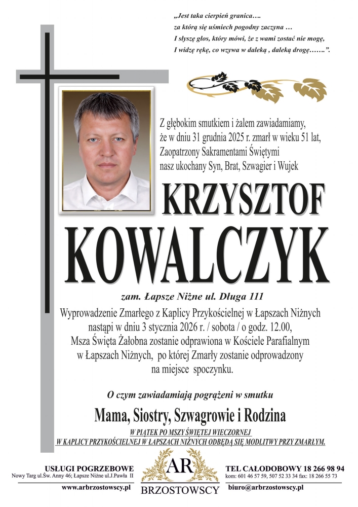 Krzysztof Kowalczyk - Nekrologi - podhale24.pl