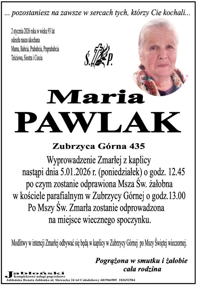 Podhale24.pl zastrzega sobie prawo do nie publikowania wspomnień, w szczególności tych nie związanych z profilem działu nekrologi, zawierających wulgaryzmy, wzywających do zachowań niezgodnych z prawem, obrażających osoby publiczne i prywatne, obrażających inne narodowości, rasy, religie itd, oraz te, bez możliwości telefonicznej lub mailowej weryfikacji ich autora.