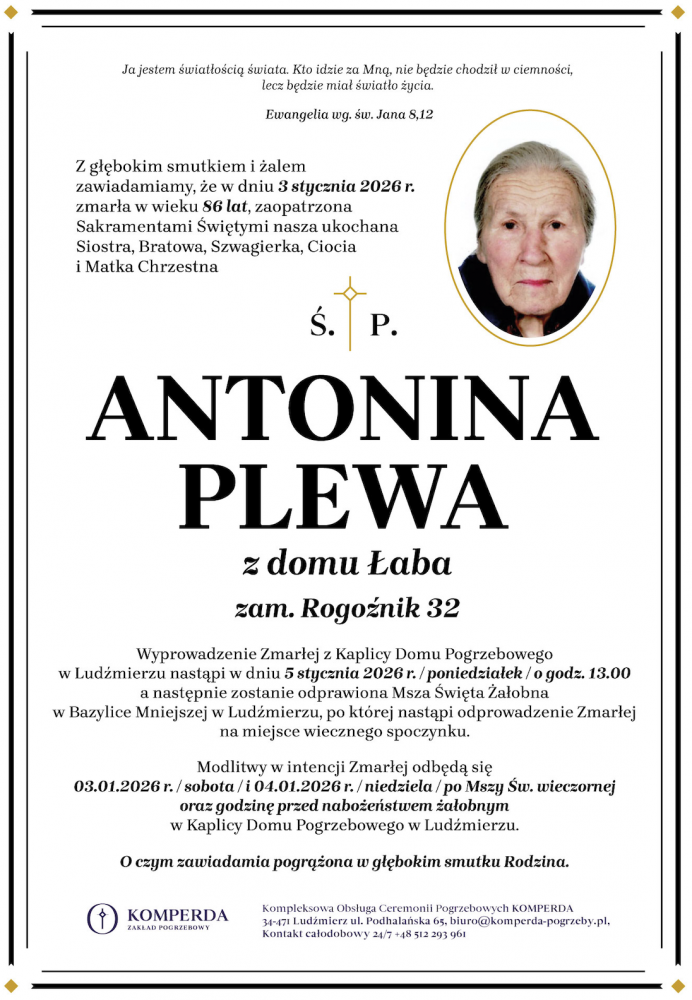 Antonina Plewa - Nekrologi - podhale24.pl