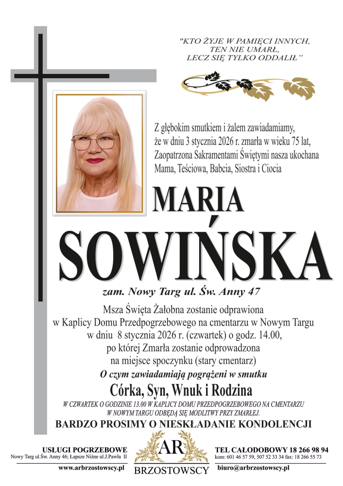Maria Sowińska - Nekrologi - podhale24.pl